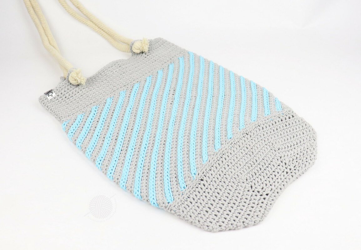 Diese Häkelanleitung besteht aus bebilderter Anleitung zum Häkeln von zwei Taschen, Größe 45 cm x 36 cm (für Erwachsene) und 30 cm x 28 cm (für Kinder) (gemessen ohne Henkel). Die Größe der Tasche kann man sehr leicht verändern, in dem man die Mitte größer oder kleiner häkeln (die Formel für Umrechnen wird in der Anleitung angegeben). Die Tasche kann man entweder als Shopper oder als Strandtasche (Freizeittasche) benutzen. Die Taschen kann man entweder mit gehäkelten Henkel oder mit Taschenkordel machen.