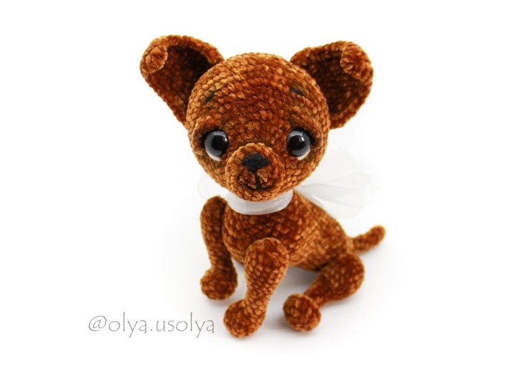 With this crochet pattern you can Crochet stuffed amigurumi toy "Chi-Chi the puppy" (chihuahua dog) according to the original pattern by Olya Usolya.