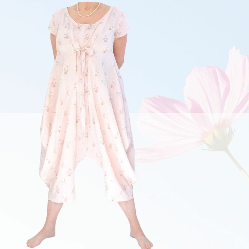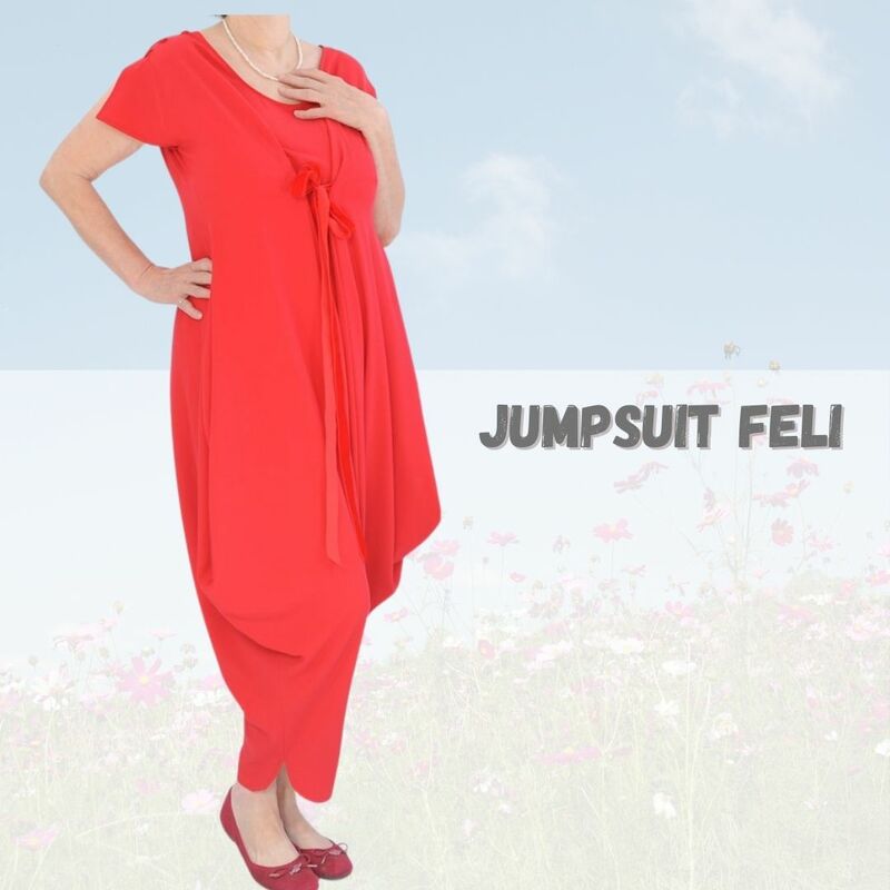 Cute jumpsuit sewn from muslin or lightly draping woven fabrics. With this jumpsuit you are dressed casually and yet super modern. It is perfect for hot summer days. There is a zip in the back. The cut is designed for a body height of 1.68m, it is marked how you can easily adjust the length to your size.