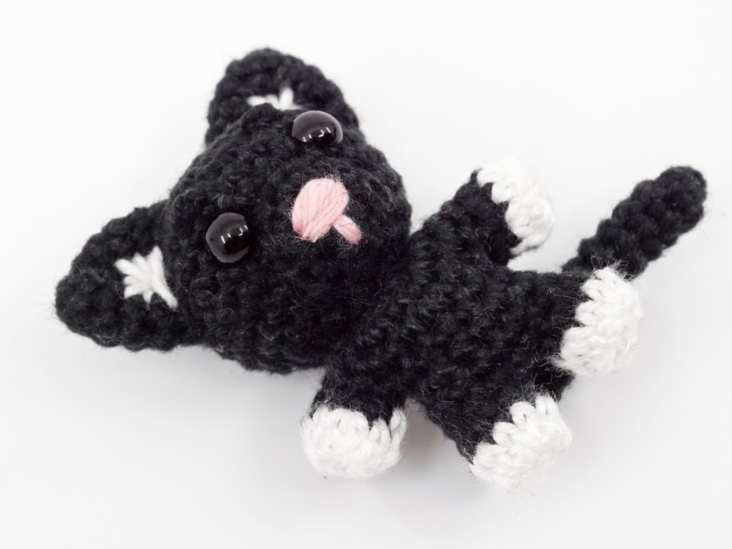 This little cat can be crocheted relatively quickly and is perfect as a decorative figurine, gift or key chain.
