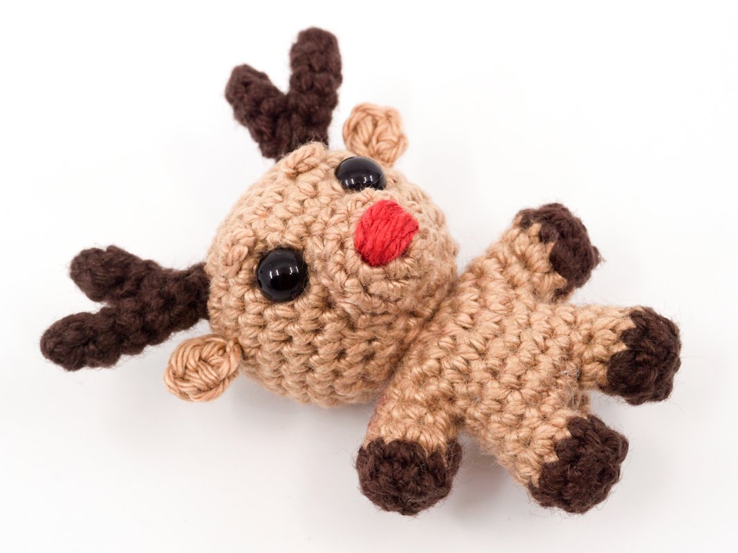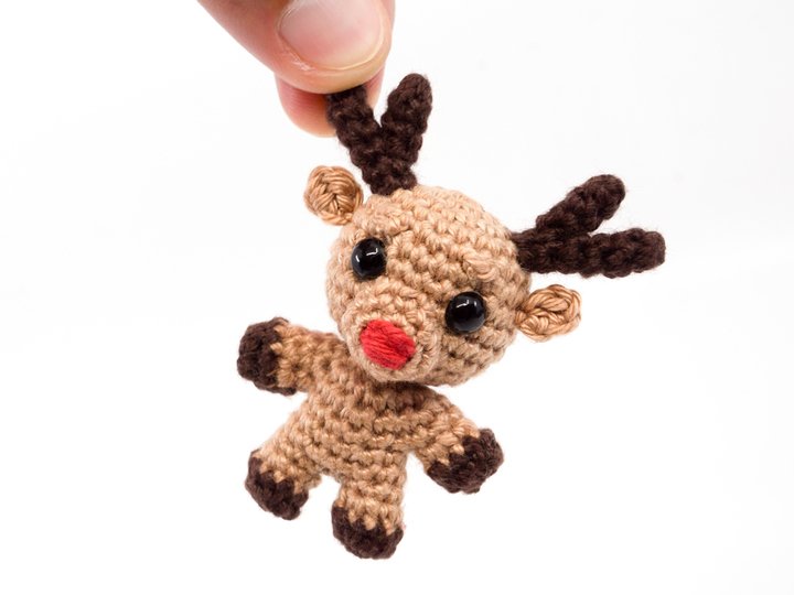 This little reindeer can be crocheted relatively quickly and is perfect as a decorative figurine, gift or key chain.