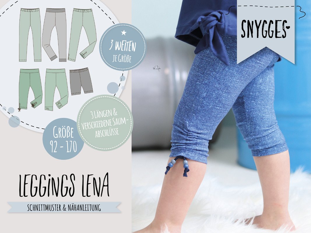 LENA ist eine Leggings, die gleich in 3 verschiedenen Längen und mit verschiedenen Saumabschlüssen genäht werden kann.