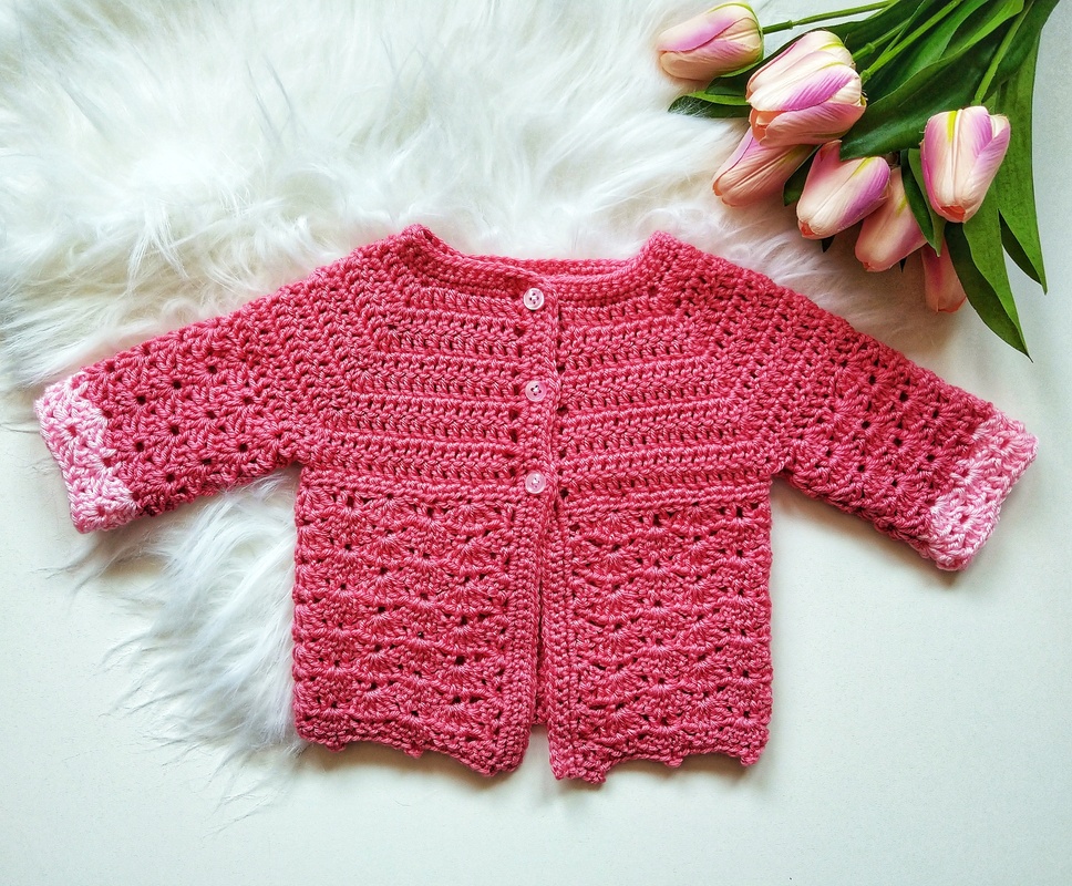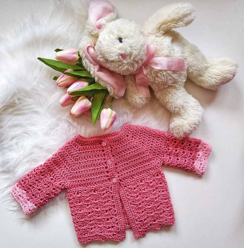 The pattern is suitable for advanced beginners and it’s using simple double crochet stitches and shells to create a nice, textured and delicate look.