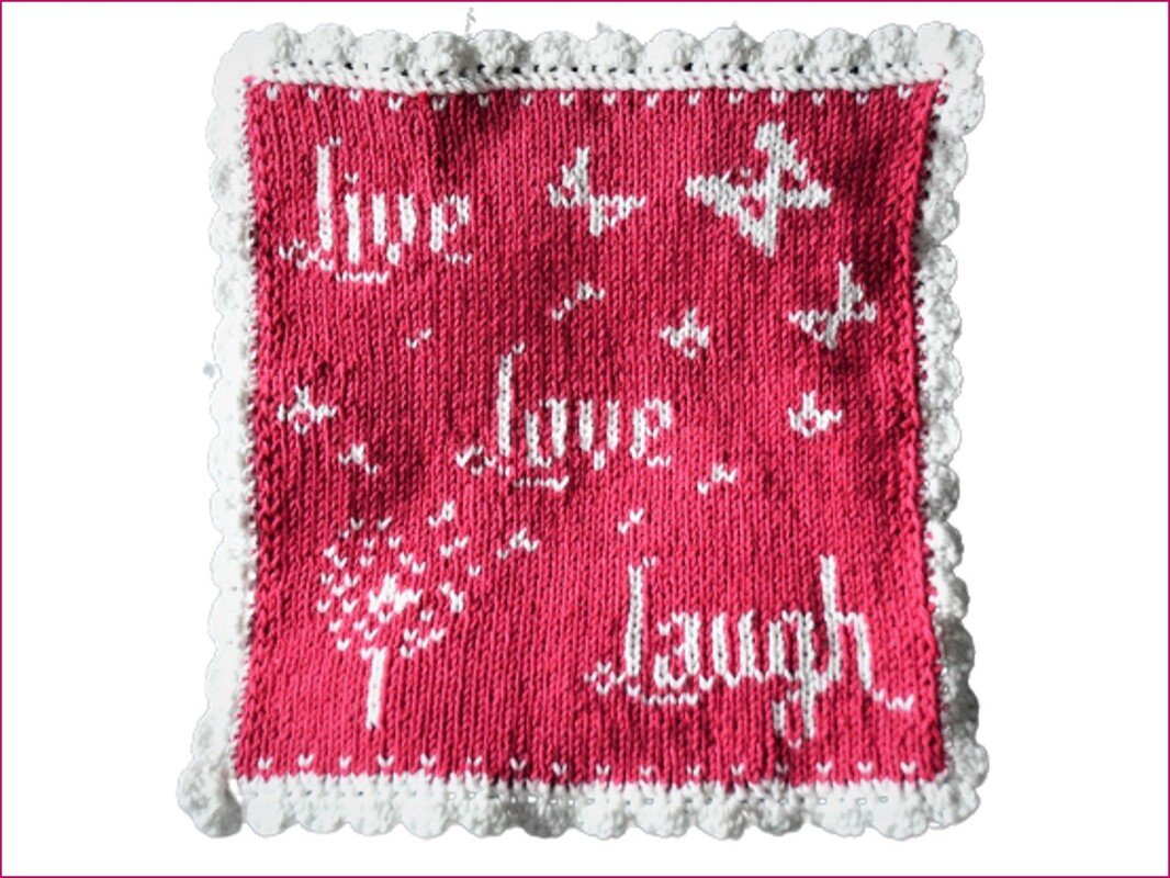 Of course the motif is also perfect for a dishcloth or for potholders. With thicker yarn you can even make a pillowcase. No matter what you create, hopefully the saying together with the butterflies will bring joy into your home!
