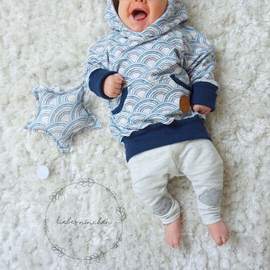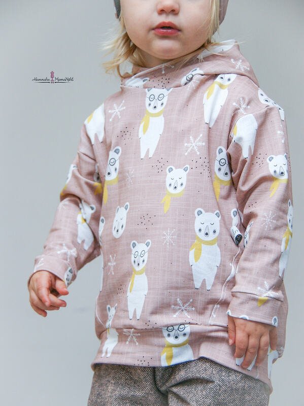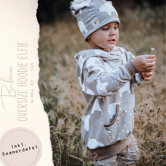 Mit diesem Ebook erhältst du das Schnittmuster Oversize Hoodie Elfie die du mit oder ohne Kapuze, mit oder ohne Bauchtasche und mit einfachen oder Mitwachsbündchen nähen kannst.