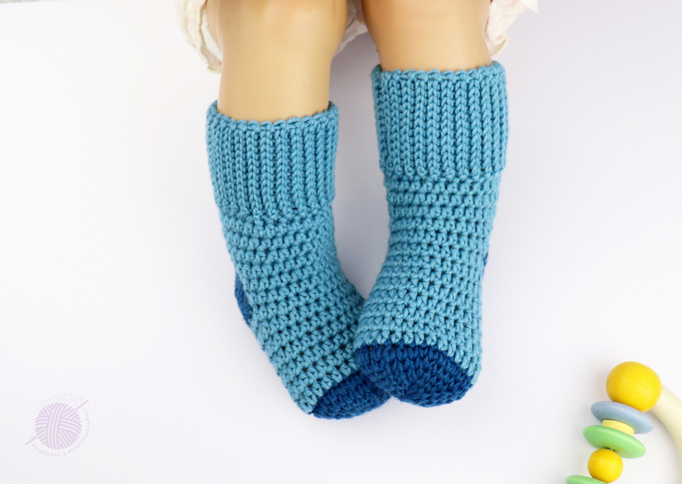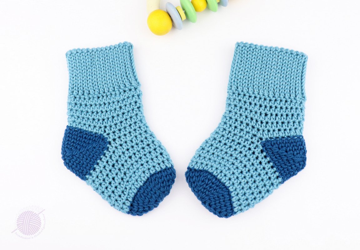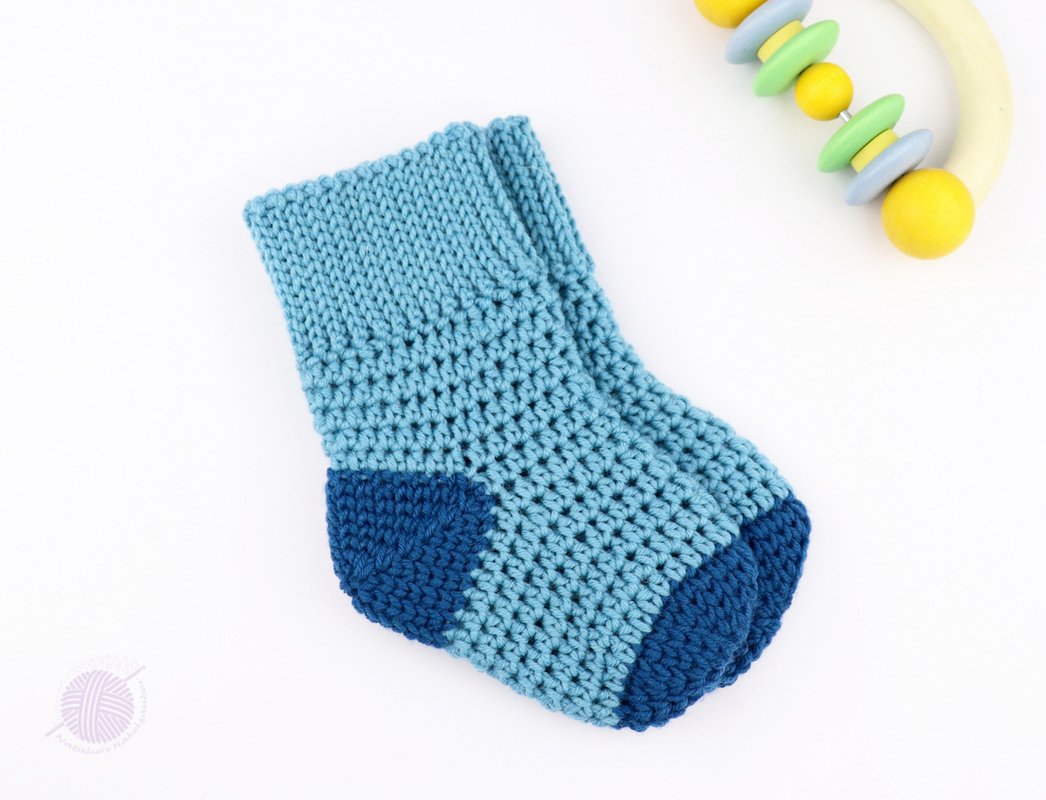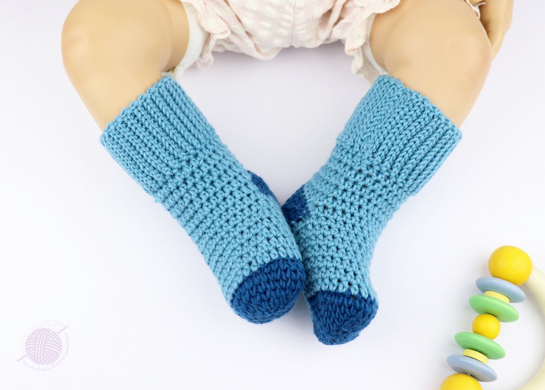Crocheting soft baby & children's socks with the cuff, heel and toe in the knitted look quickly and easily for your child or grandchild is no problem at all with this pattern!