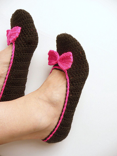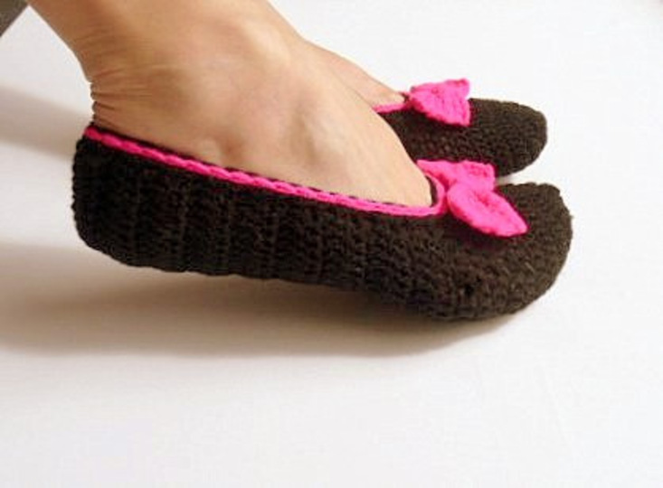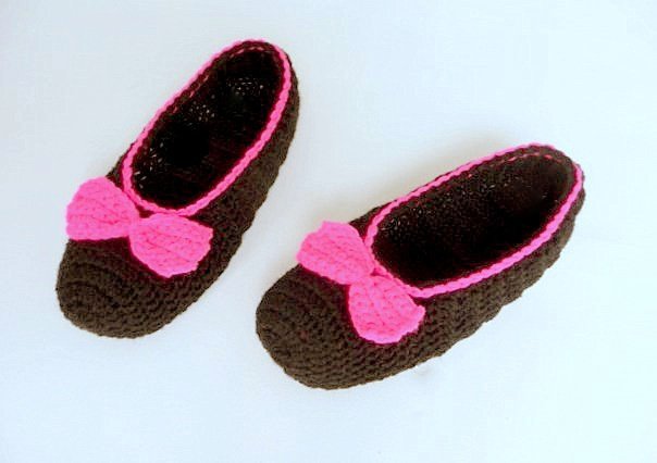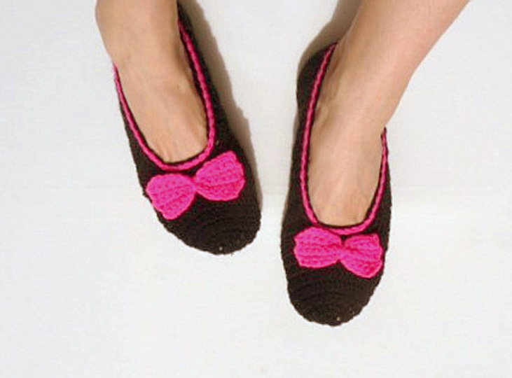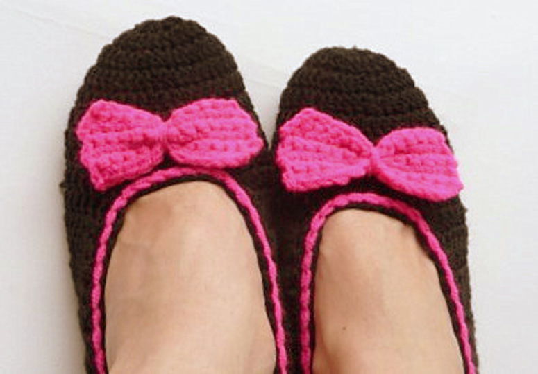 Häkelanleitung Hausschuhe häkeln - Damen-Ballerinas mit Schleife - No.60