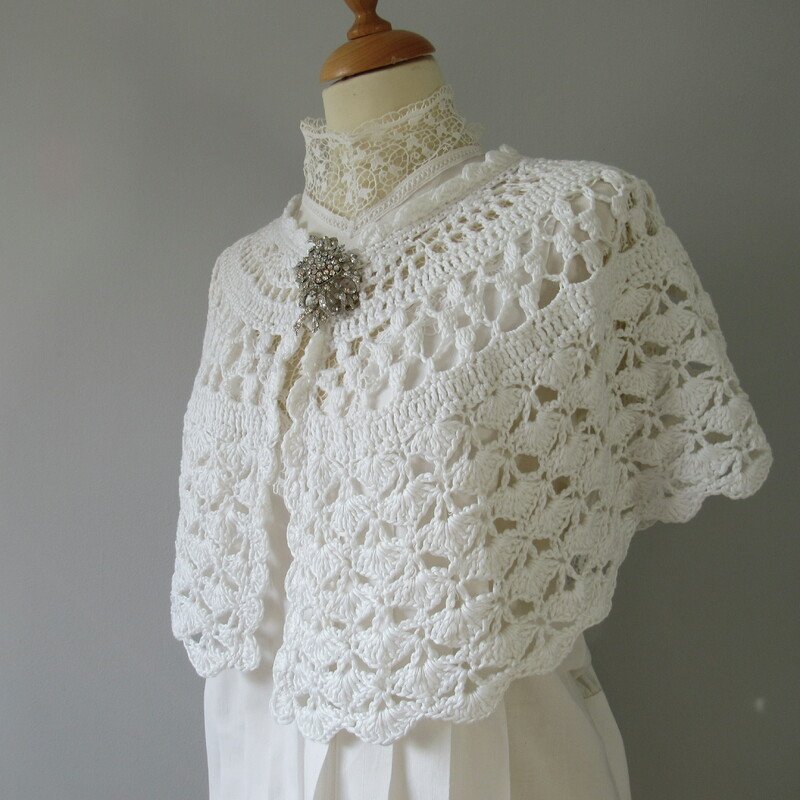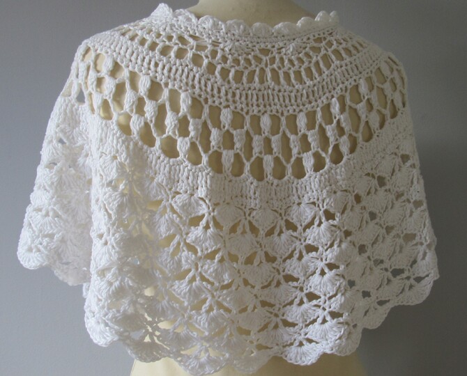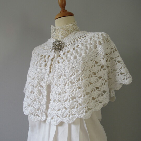 This capelet is designed using different stitch patterns allowing the caplet to drape beautifully over the shoulder. It is worked from the top down in one piece.