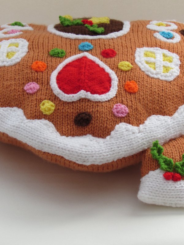 Knit yourself an irresistible gingerbread house cushion that looks good enough to eat.
