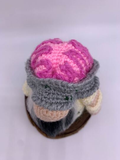 The finished gnome has a size of ca. 11 cm when using wool that is suggested in the pattern.