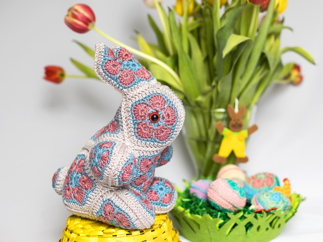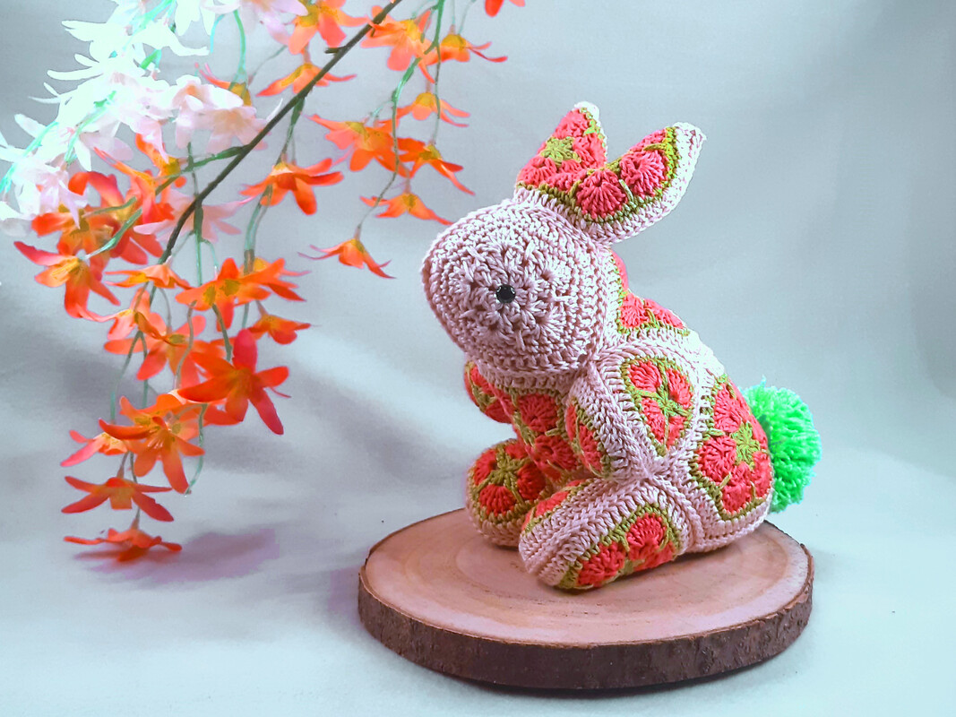 In the next step, the motifs will be joined together (crocheted together). Here you need more concentration. In the pattern everything is described in detail. In addition, you will find many very detailed figures in the pattern. Step by step you join all the flower elements to the figure.