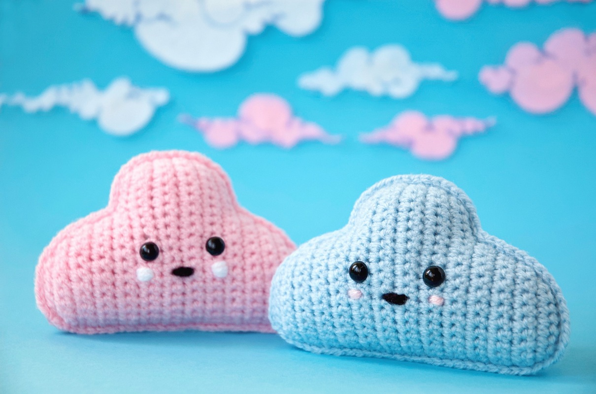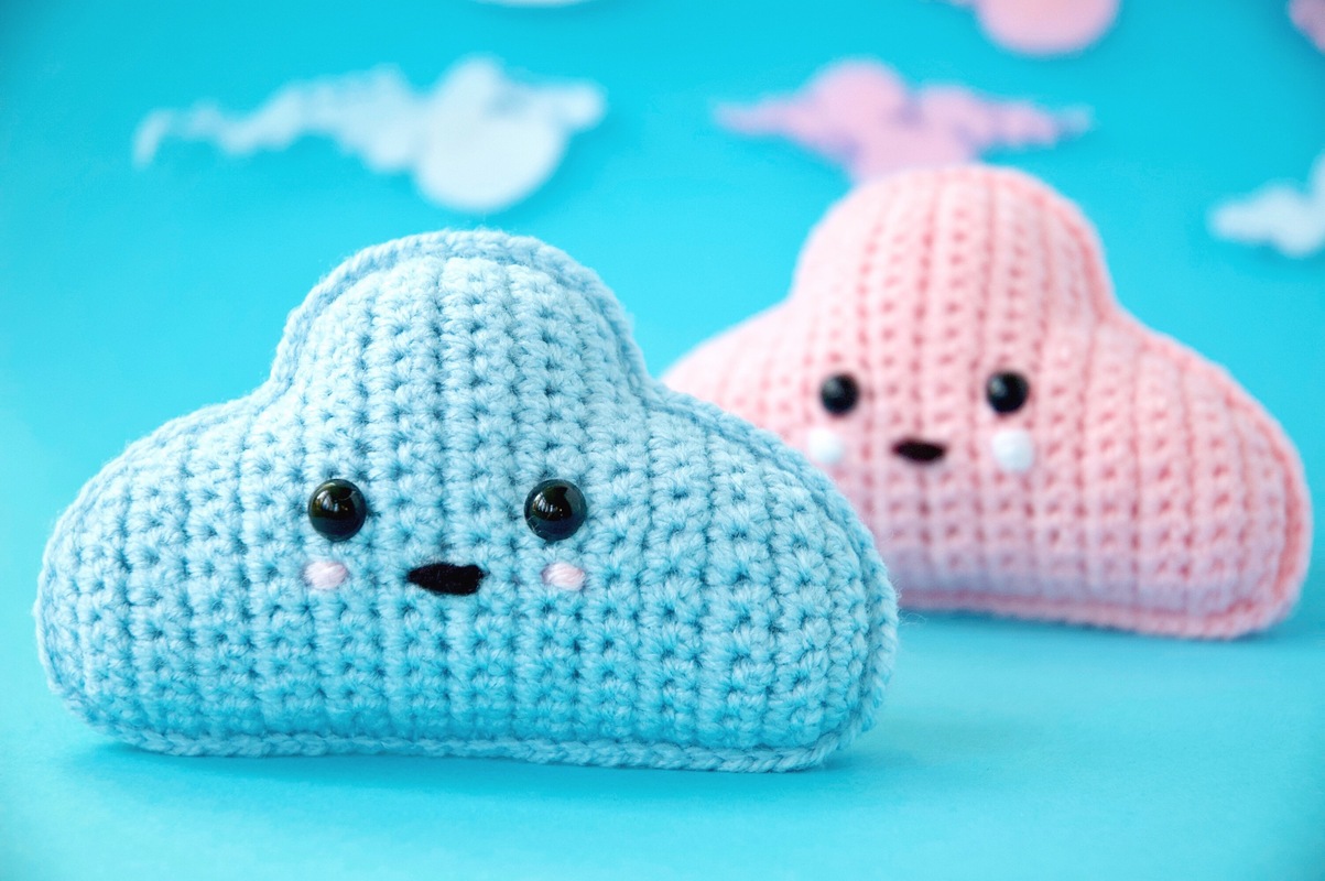 A quick and fun pattern, perfect to make several clouds for a baby mobilé or use thinner yarn and turn them into a key chain.