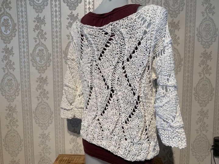 Gr. 36/38 in der Anleitung (mit kurzer Erklärung, wie du den Pullover leicht auch in größeren Größen arbeiten kannst)