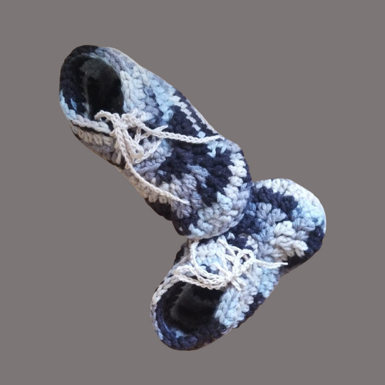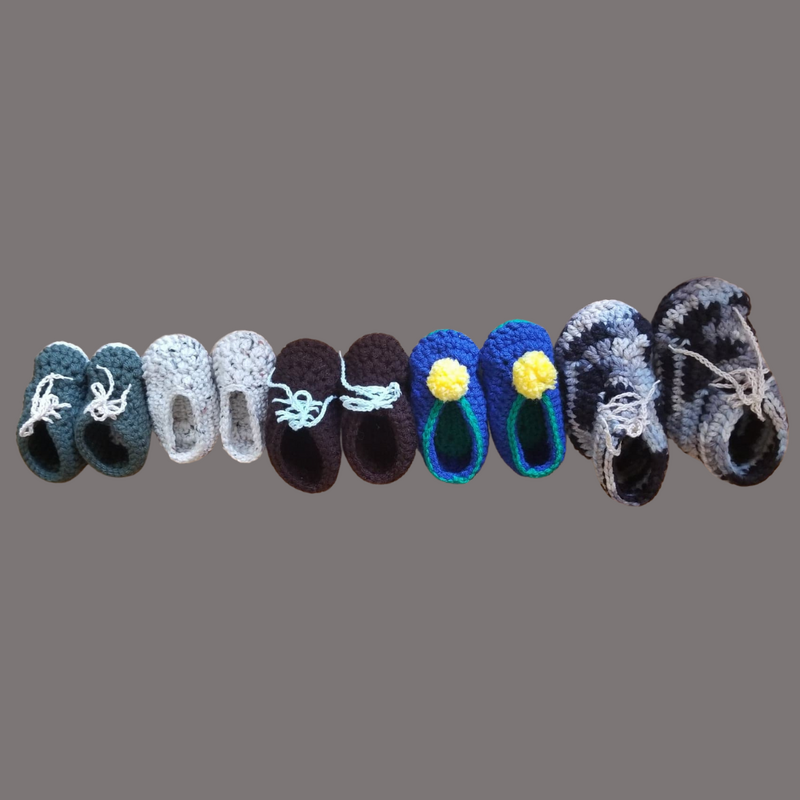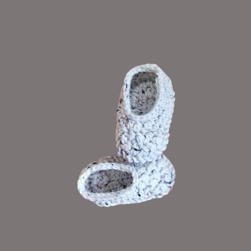 Cute and easy baby boy boots in 4 sizes. Also shown how to do them in a slipper style. Sizes are from 3 months to 12 months. Super easy and quick to make for the baby in your life.