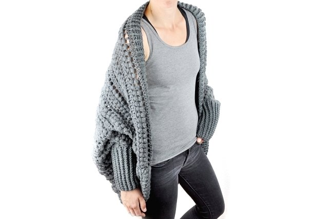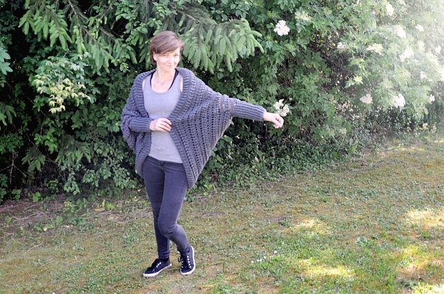 Ja, du kannst die Jacke leicht in der Länge anpassen. Dann wir einfach etwas weniger häkeln.