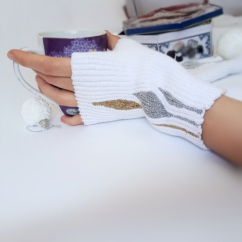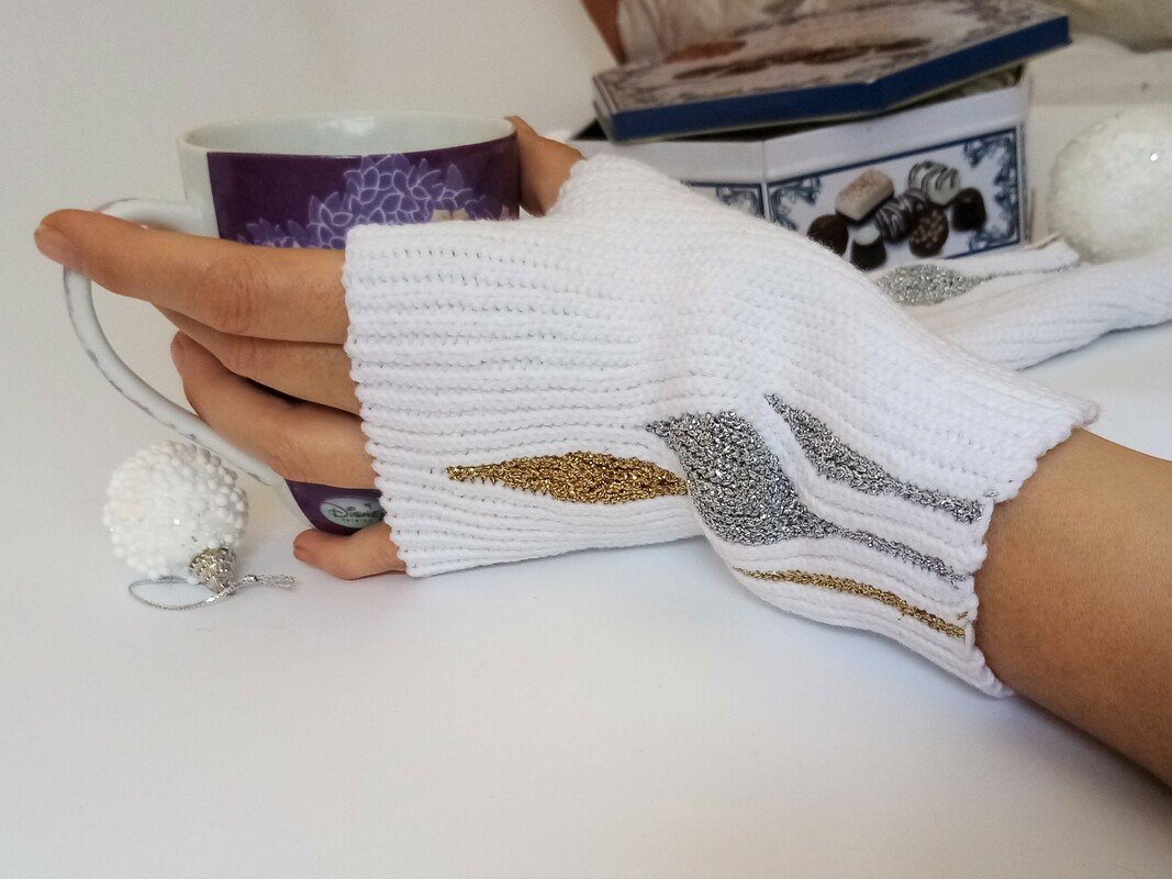 Wonderful elegant fingerless gloves with decoration - Ice Leaves.