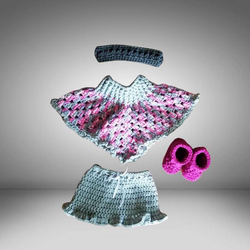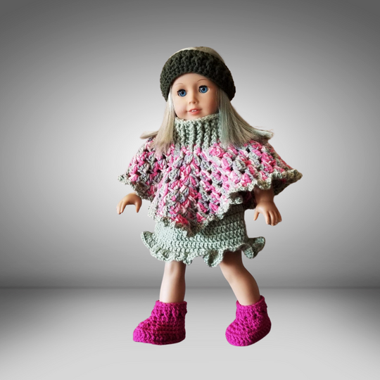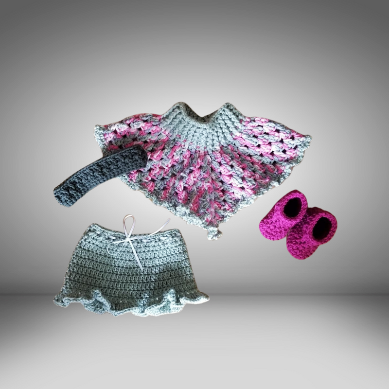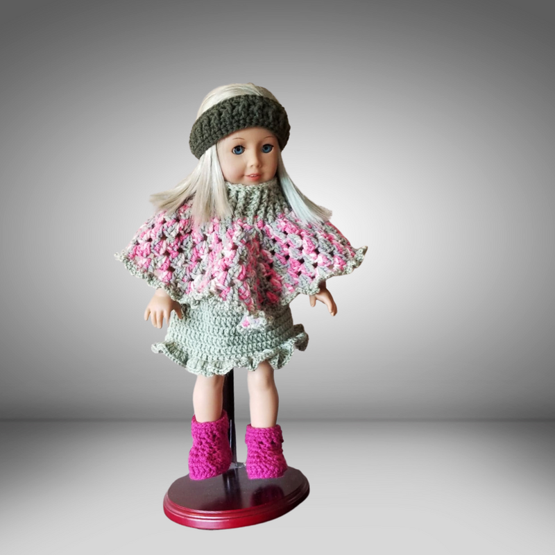 Another little twist on the poncho set. This one with some fashionable boots, and a headband.