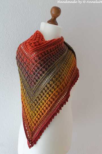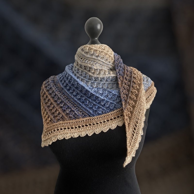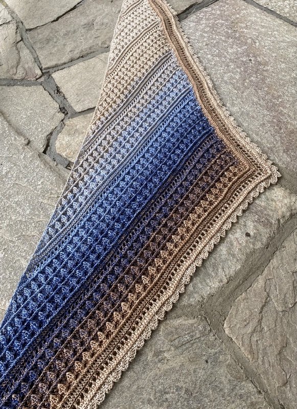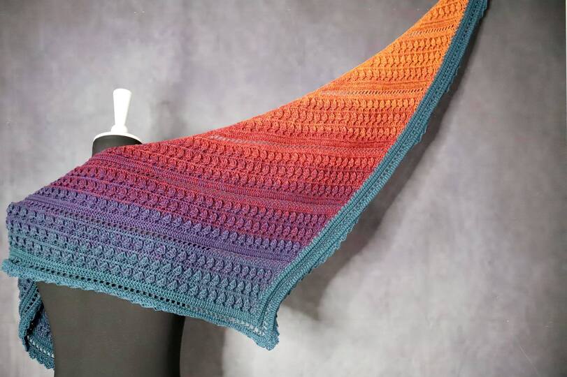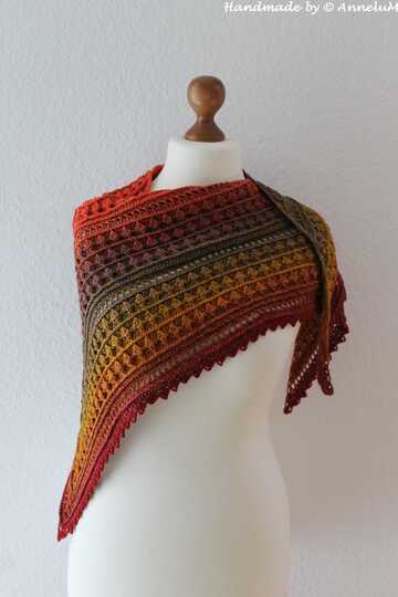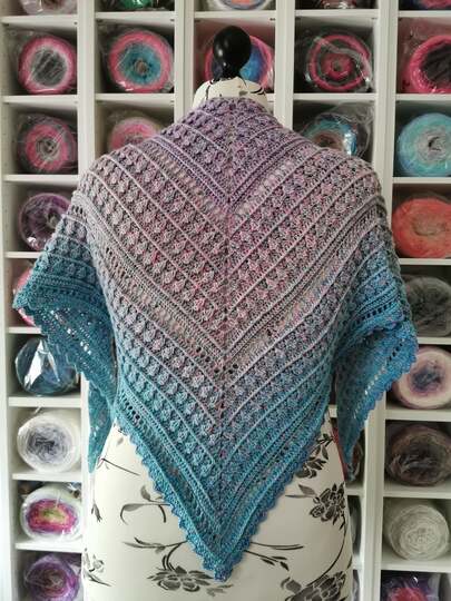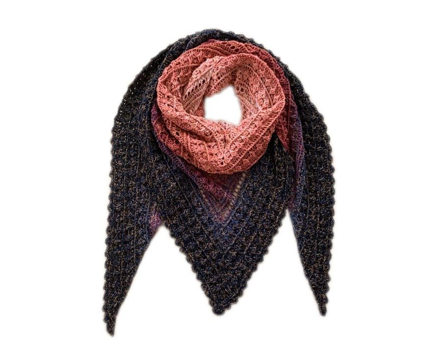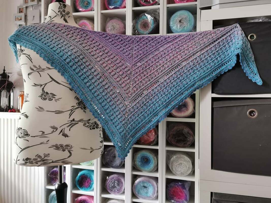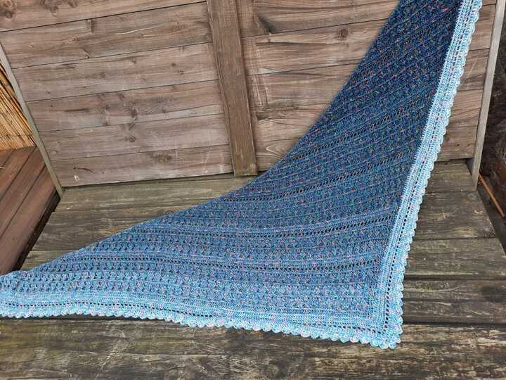 The Gezeiten shawl is a real all-rounder. Here you have the option of crocheting a triangular shawl that is worked from the side and not (like the Salaisuus pattern), a classic symmetrical triangular shawl or 2 different variants for a scarf, a stole or a blanket in rows back and forth. There should be something for every taste.