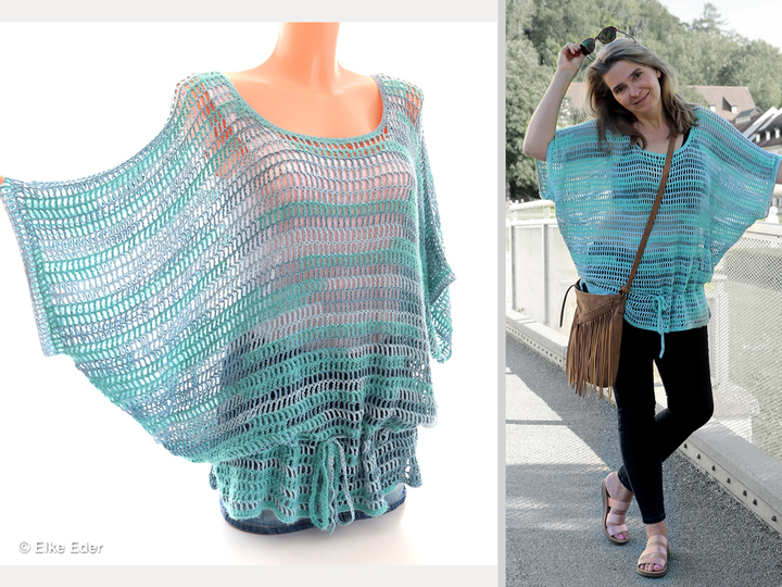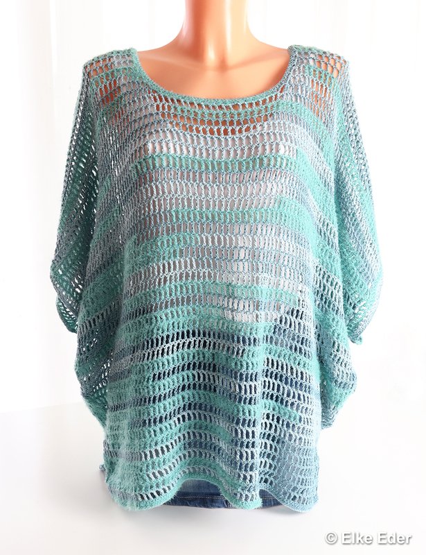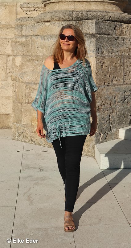 This casual tunic with batwing sleeves in a trendy oversize look is quick and easy to crochet and an absolute eye-catcher. The pattern is simple, the cut is figure-hugging and unusual. I have used an effect yarn, but the tunic can of course also be crocheted with your favorite yarn.