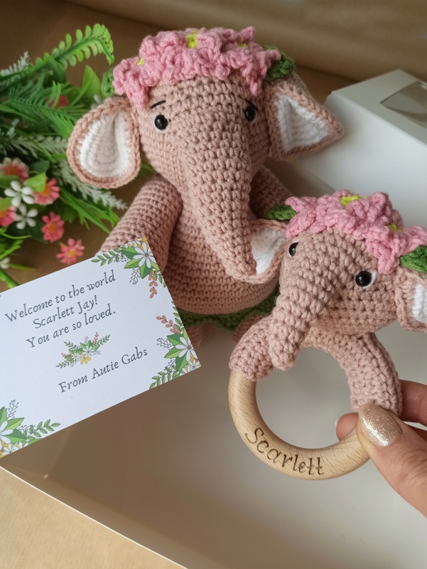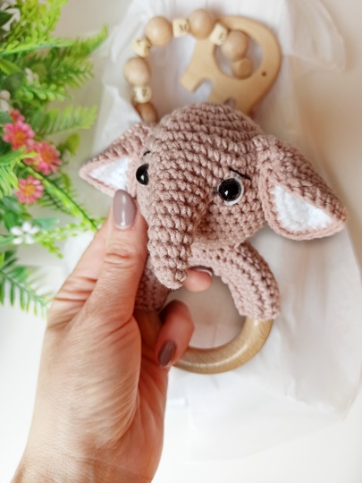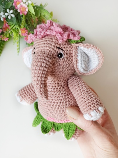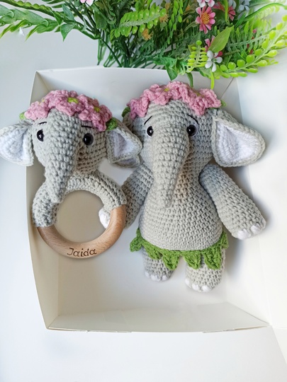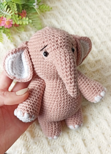 Size: the elephant about 6.7 inches (17 cm) height, the rattle about 5.12 inches (13cm) height with semi cotton yarn and a 1.75 mm crochet hook.