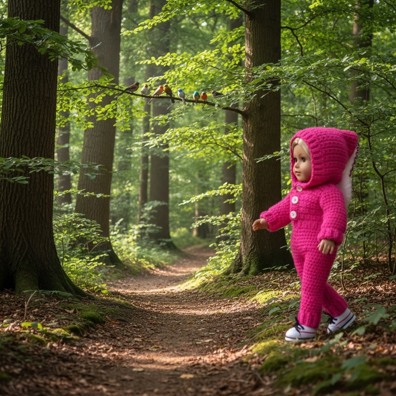 I am obsessed with this little onsie for the 18” doll, American Girl Doll. The outfit is done with worsted weight yarn, and it is quite simple to make. I am next going to try and make some in bigger sizes for children. But thought I would try it out for a doll first. So pleased with it. Such a pretty little pink set with the faux fur pompom.