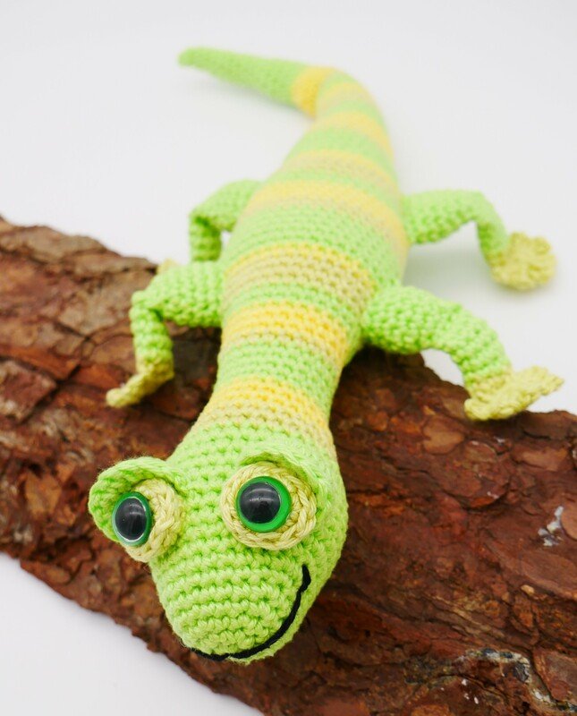 süßer Salamander mit ausführlicher Häkelanleitung mit vielen Fotos Schritt für Schritt erklärt