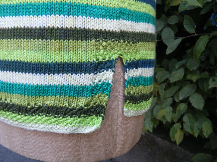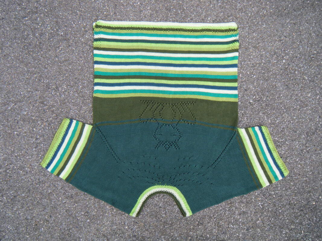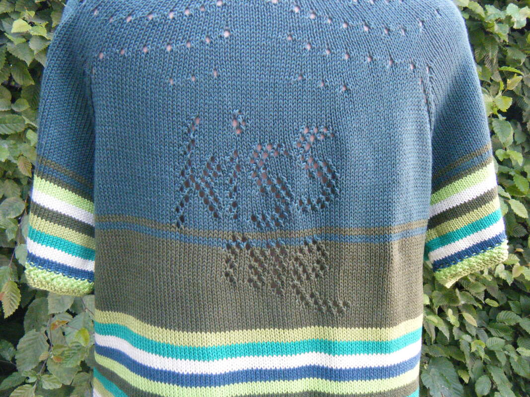 I recommend it to knitters who have already knitted at least one RVO (Raglan from the top) and a few lace patterns.
