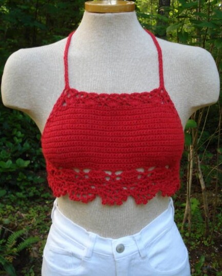Yarn: The top shown in the photo is crocheted in "Tatamy DK" (a DK weight or size 3 yarn) from Kraemer Yarns. If you are using a yarn other that what is recommended, make sure your gauge is very close to 5 sts and 6 rows = 1 inch in single crochet. You will need approximately 350 yards to complete this halter top.