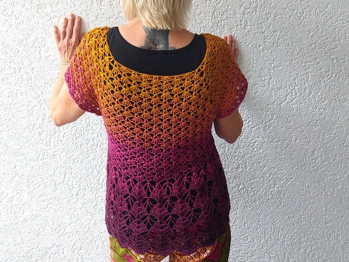 Die Tunika kann mit Farbverlaufsgarn oder einfarbig gehäkelt werden.