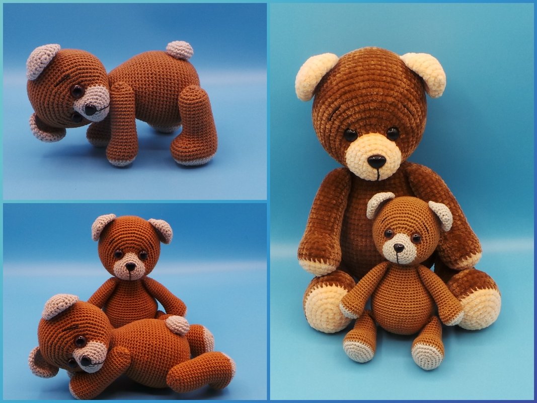 Bär Benno kann mit oder ohne Gelenke gehäkelt werden. In der Anleitung sind beide Versionen ausführlich beschrieben.