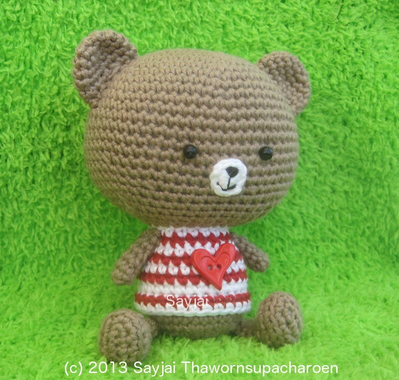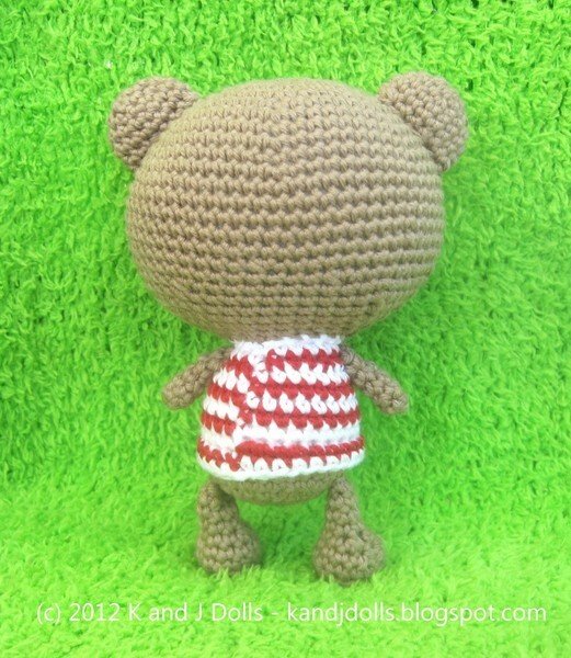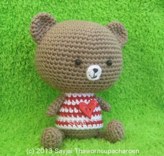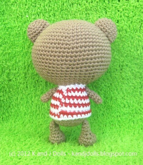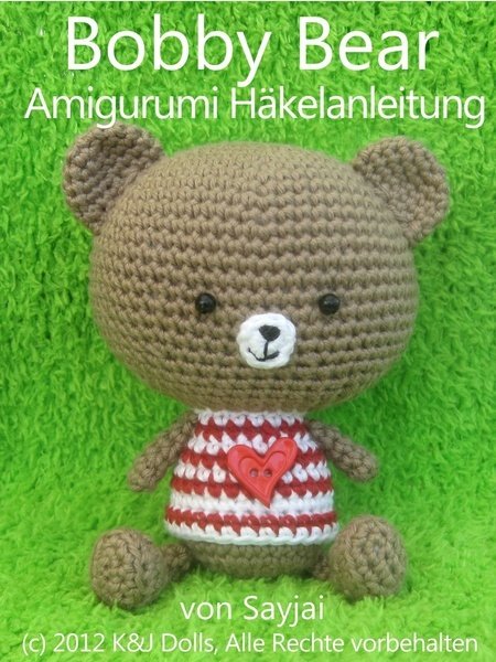 The Bobby Bear crochet pattern is written in English (using US crochet terms). It contains 7 pages with detailed instructions and 16 photos to help you make this cute bear. A separate German translation is included.