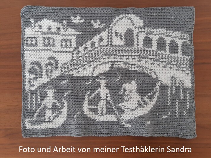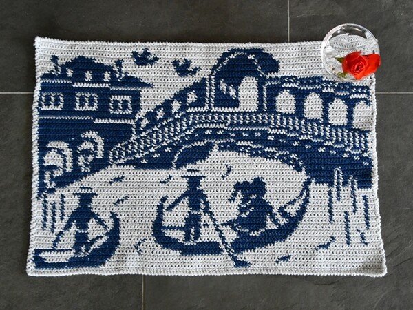 The lovely couple is travelling again, this time to Venetia. The Italian « Dolce Vita » immediately comes to mind but also beautiful buildings, narrow alleys and a romantic gondola ride. Even while crocheting you can’t stop dreaming about this beautiful scene 😊