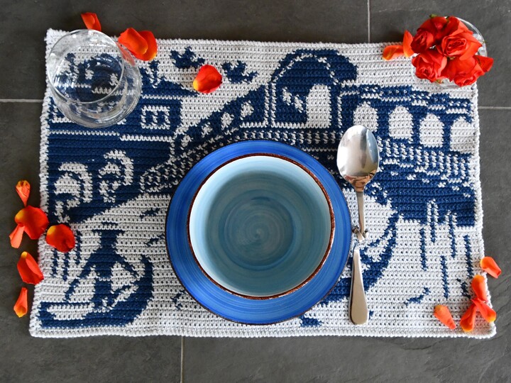 This placemat is worked in the Tapestry Crochet Technique. This is quite easy, fun to do, and it is explained in detail in the pattern.