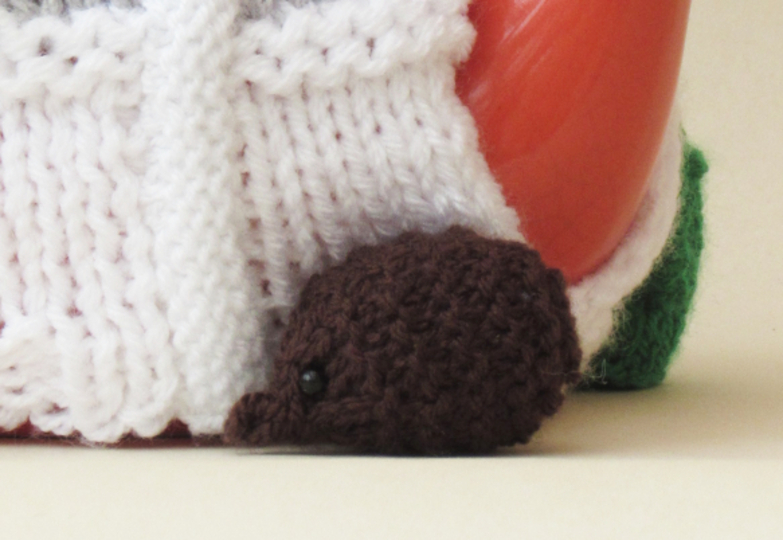 We're all more nature aware these days and I thought it would be lovely to add a little bit of wildlife to the tea cosy, so I made a little hedgehog. He's hiding around the side and he's looking for tasty slugs.