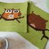 A must-have for owl fans. This pair of potholders features a cute family of owls. On the front of the potholders are the owls from the front, one with closed eyes and one with open eyes. The back is the same for both potholders and shows the owls from behind.