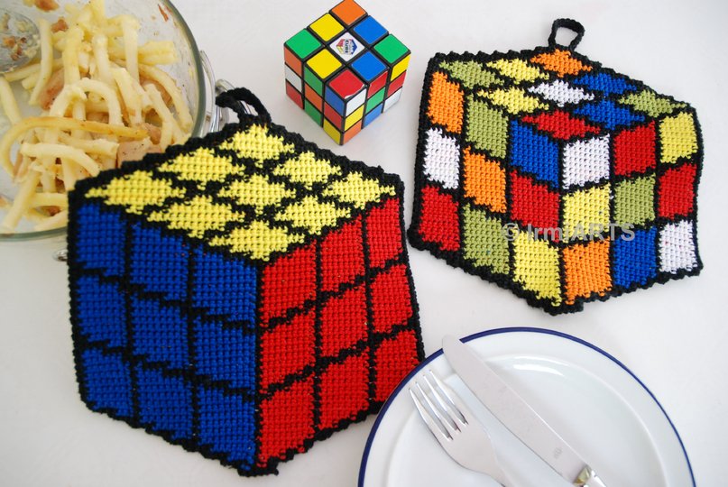 If you enjoy needlework and want to try a new technique, this tutorial is for you. The Doubleface technique is not difficult to learn, but offers the opportunity to create truly unique potholders. Whether for yourself or as a gift for others is up to you. Great for anyone whose fascination with the Rubik's Cube has never ended! The instructions contain four two-page motifs of the cube, as well as a blank one that you can colour in however you like.