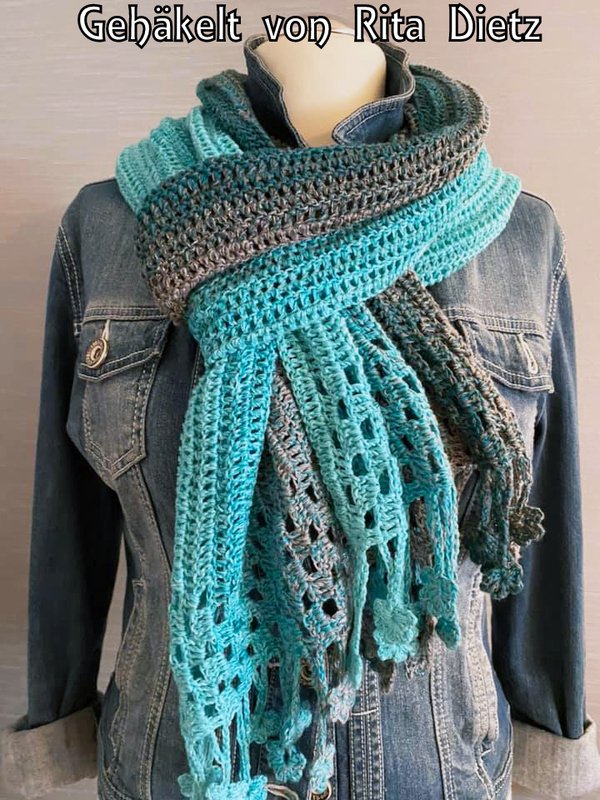 Please note my copyright: The pattern for a crocheted scarf may not be passed on, uploaded to other portals or resold. Products made with this pattern may be sold in small quantities after consultation with me.