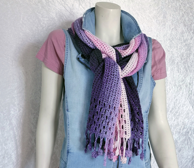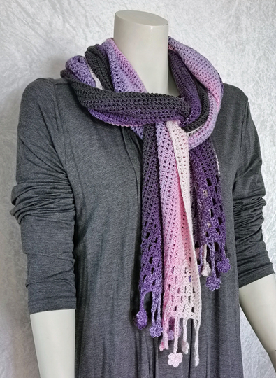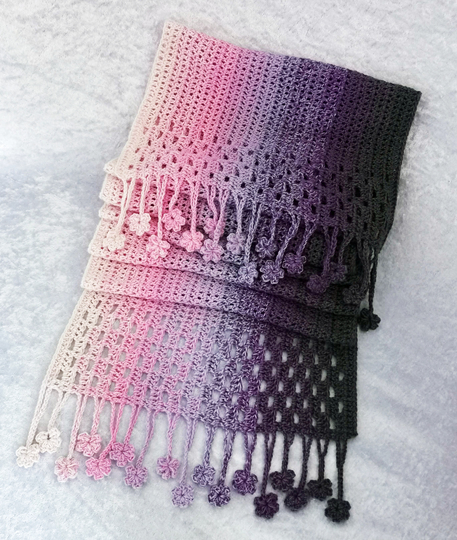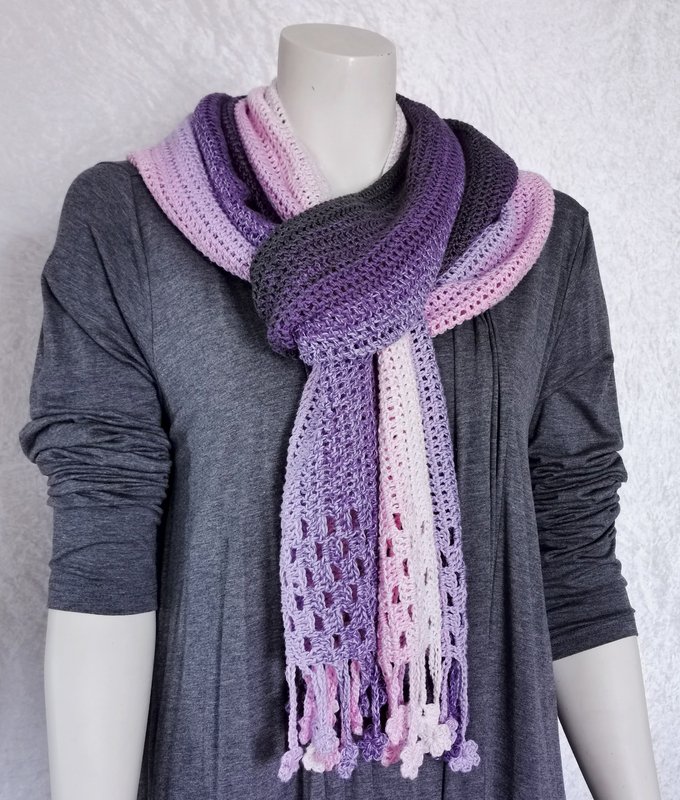 is a pretty scarf designed as a variation of my crochet pattern "Daisy".