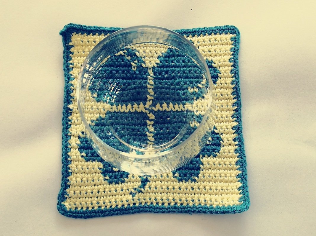 The finished coaster will be approx. 13,5 cm x 13,5 cm