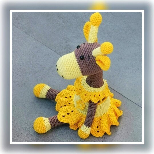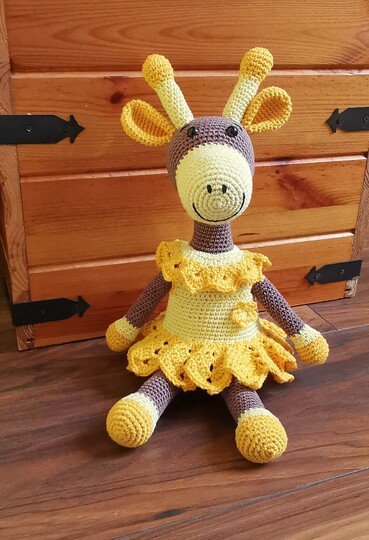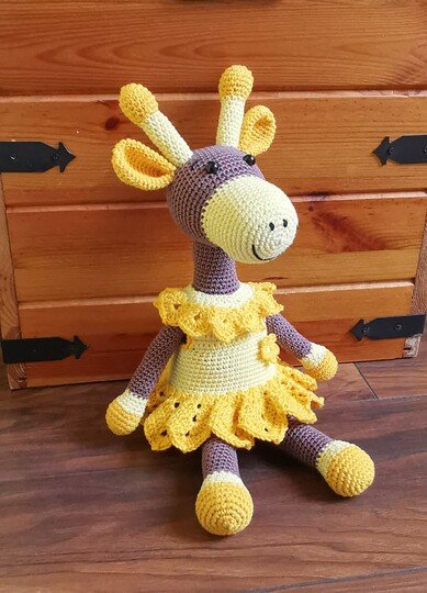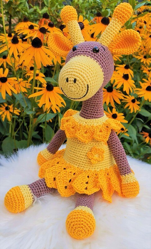 This time everything started with the dress, which was meant to be for Froggy, but somehow that didn't look good at all. My son (23) then decided, this dress calls for a giraffe - so I made a giraffe. And what shall I say, the result is just perfect now. The name Sunny is, becaus she reminds me so much of sunflowers ..... a real summer child ;-)