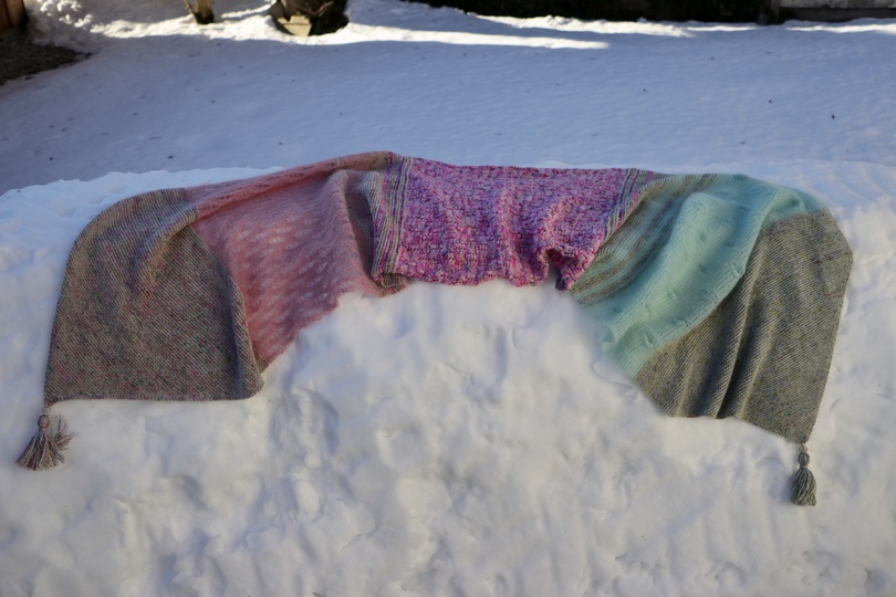 My Highland Heater is 200cm/2,18yds from Tassel to Tassel and 55cm/0,6yds wide.