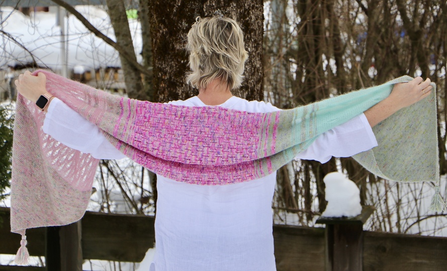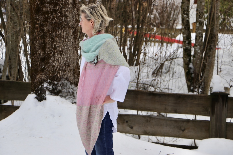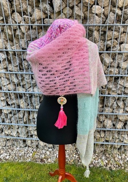 The effects in my Highland Heather are paying homage to that wonderful nature - a little green for the valleys, a little pink for the heather and not to forget the little bumblebees flying around pictured by a nice lace pattern. The diversity of the Scottish landscape symbolized by different yarns and patterns. For me, designing and knitting this scarf was again a little journey into the nature and stunning scenery of Scotland.