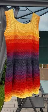 Das Kleid Quinn ist, aufgrund seiner Arbeitsweise, bestens für Farbverlaufsgarn geeignet.