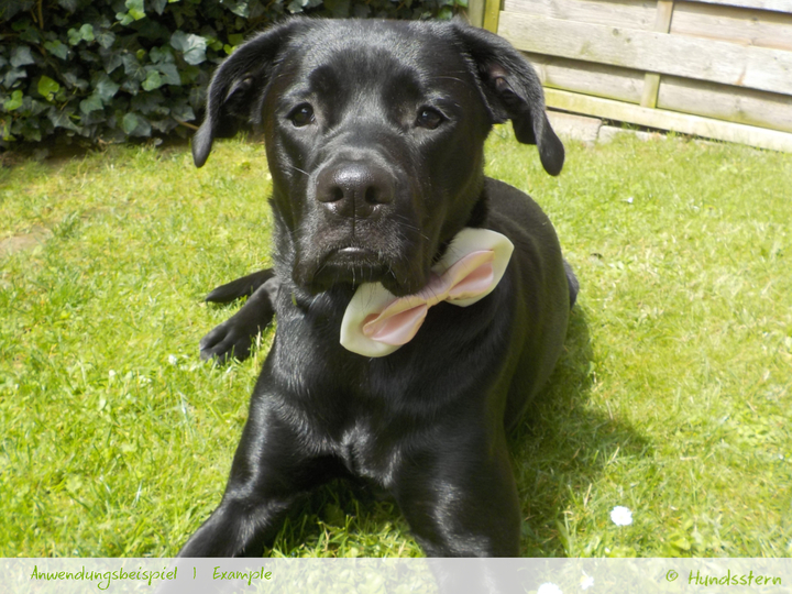 The bow is attached to the collar with 2 elastic bands and can be removed just as easily.