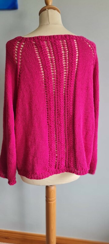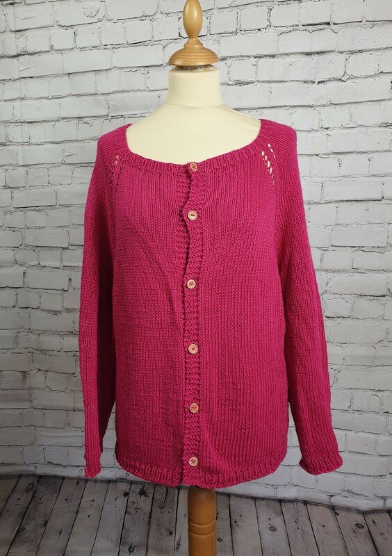 This is a Pattern for a Beautiful and super cosy Cardigan in a light oversize fit. Fast finished and so much fun to work on. The Cardigan is worked in one piece as a Raglan top down, with a slight lace pattern worked in the back which gives an unique look to the finished Cardigan.