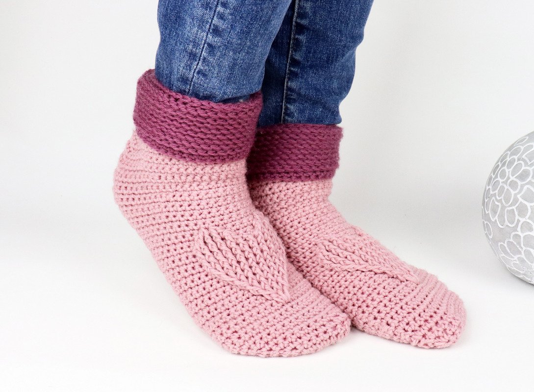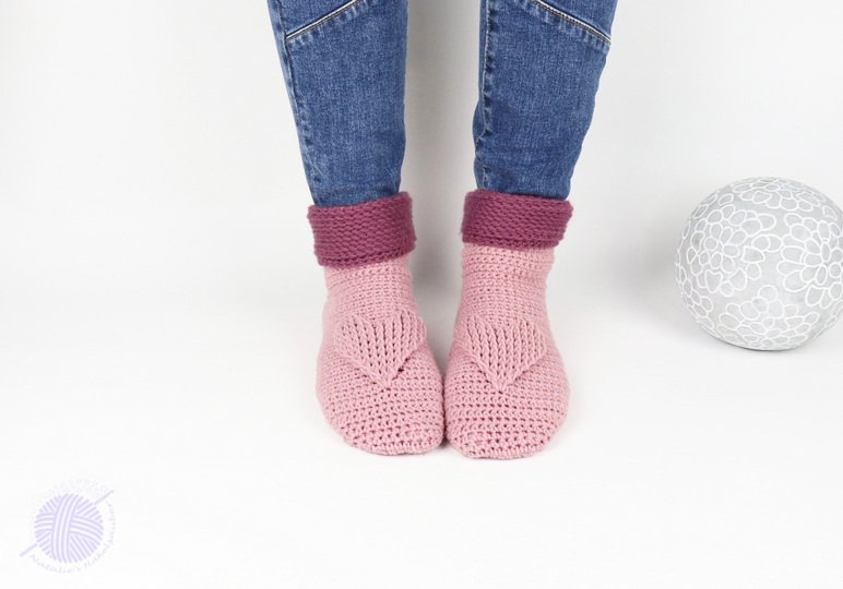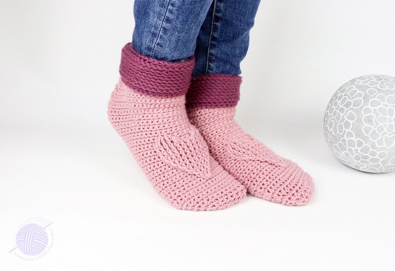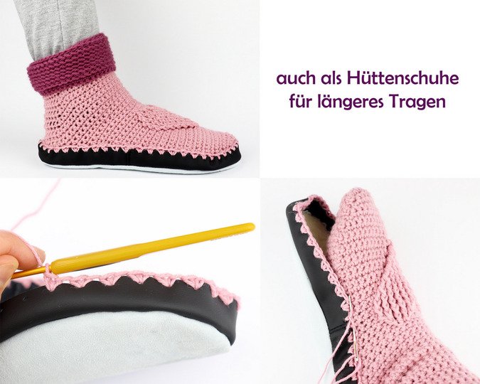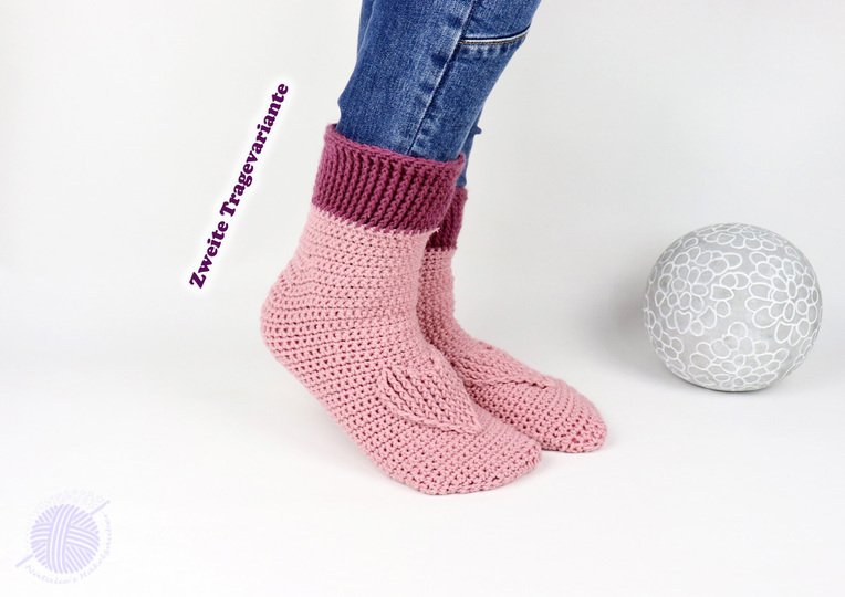 The extensive, richly illustrated PDF crochet pattern for crocheting house socks with the pattern "Heart". You can crochet these socks for women as well as for men and children. With these house socks your feet will never freeze! Also nice as a small gift for friends and relatives.