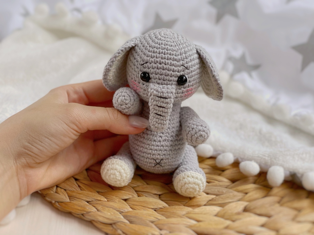 Using my crochet pattern, you can create a sweet amigurumi elephant.