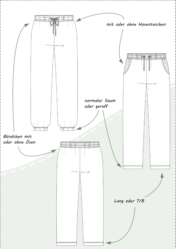 Start your sewing project now and create comfortable jersey pants with the “Mira” sewing pattern!