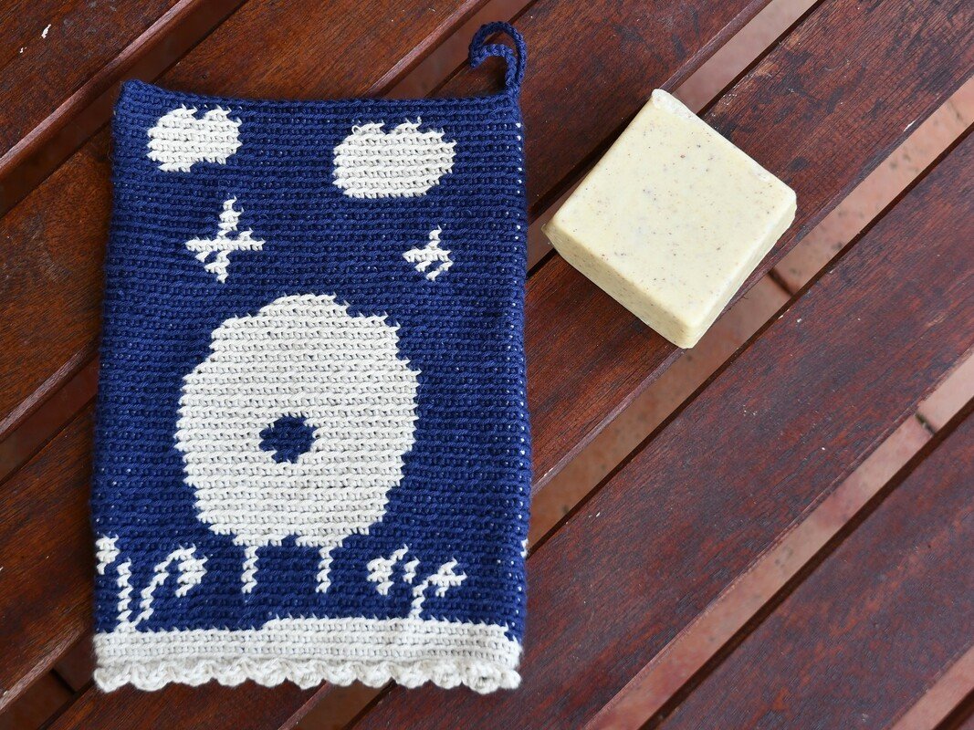 The washcloth is worked in Tapestry Crochet. The pattern includes a very detailed basic course for the Tapestry Crochet Technique, which is quite easy to learn.