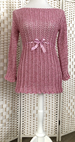 Das schöne Babydoll-Kleid (oder Pulli) ist an jede Größe anpassbar und für nahezu jedes Garn geeignet.
